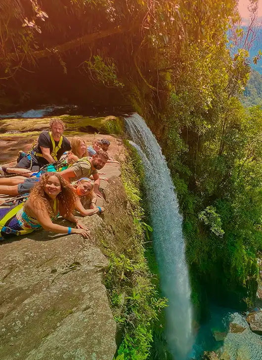 Excursion to Fin del Mundo waterfall, accompanied by the ancestral remedy of San Pedro, facilitating emotional openness and connection with the surroundings.